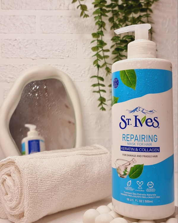 این محصول ماسک مو داخل حمام (با آبکشی)، فری سولفات و پارابن از برند ST.Ives در سری ریپیرینگ (ترمیم کننده) بوده که از پروتئین هیرولیز شده کلاژن و کراتین استفاده شده است. پروتئین موجود در موهای شما در برابر صدمات ناشی از پاککنندههای ناملایم، فرآیندهای شیمیایی پی در پی و حالت دادن به مو با وسایل حرارتی آسیب میبیند. این صدمات میتواند باعث خشکی، کاهش خاصیت ارتجاعی و ریزش بیش از حد موهایتان شود. ماسک مو برند سنت ایوز ضمن بهبود نرمی، درخشش و شادابی مو به بهبود بقا رطوبت و قابلیت ارتجاعی آن کمک میکنند. کراتین هیدرولیزشده در ماسک مو سنت ایوز نه تنها به عنوان روکشی برای موهای شما عمل کرده بلکه با نفوذ به بدنه مو، کراتین از دسترفته آن را در شکافهای میکروسکوپی ساقه مو جایگزین میکند. در نتیجه، موهای شما صاف و براق میشود کراتین هیدرولیزشده قطر تارهای مویتان را افزایش میدهد و ظاهر پرتری به موهای ریز و نازک میبخشد. همچنین توانایی موی شما را در حفظ رطوبت افزایش میدهد و سبب کاهش وزشدگی و فرار بودن مو در اثر خشکی میشود.